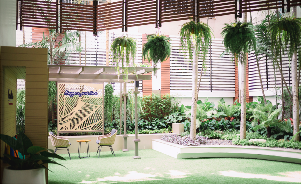 At Centre Point Plus, we understand the need and the value of green spaces in a city like Bangkok. This is why we are proud to deliver a wonderful garden area right beside our lobby where our guests can relax and enjoy being surrounded by nature. This green space creates an additional area within the Centre Point Plus Pratunam property where you can happily breathe in some fresh air and soak up the sun to enhance your stay in one of the city’s most popular accommodations.